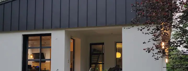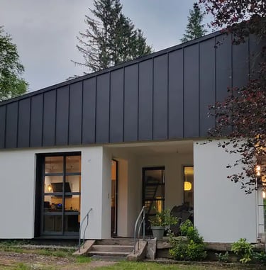 Notre maison d'architecte de 180m², sur un parc de 70 ares au paysage soigné et sauvage à la fois, lovée en lisière de forêt, au cœur des Vosges du nord.